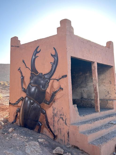 Unser Streetart-Projekt verwandelt diese verlassenen Industrielandschaften in lebendige Leinwände, auf denen gigantische Insekten die von der Zeit gezeichneten Mauern besetzen.