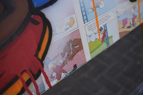 Bei dieser Serie wurden Ausschnitte aus alten Comics als Collageelement benutzt. Aus erster Beobachtung dienen sie als Hintergrundmuster, tritt der Betrachter allerdings näher heran, kann dieser die Comic Geschichten erkennen und lesen.