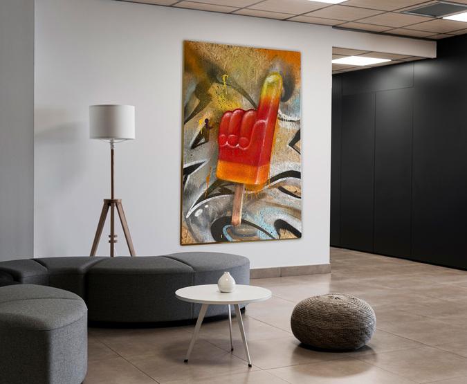- Beschreibung: Diese Nostalgie-Serie zeigt verschiedene Eissorten auf Leinwand.