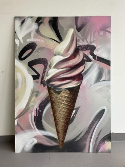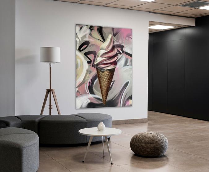 - Beschreibung: Diese Nostalgie-Serie zeigt verschiedene Eissorten auf Leinwand.