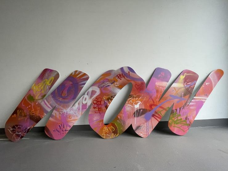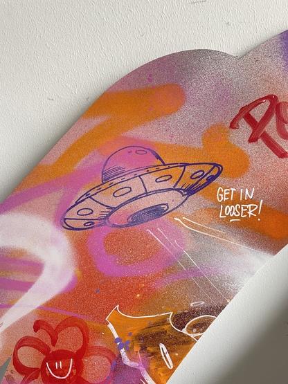Beschreibung: Konturgenau genschnittene Typografie mit Graffiti.