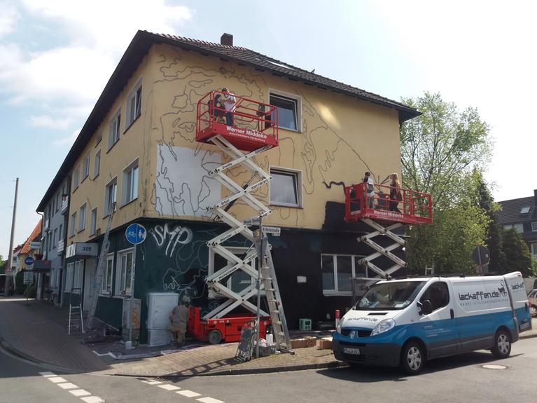 Die Fassadengestaltung ist Teil des Projektes "Save the Earth", mit der wir auf das Aussterben vieler Tierarten aufmerksam machen möchten.