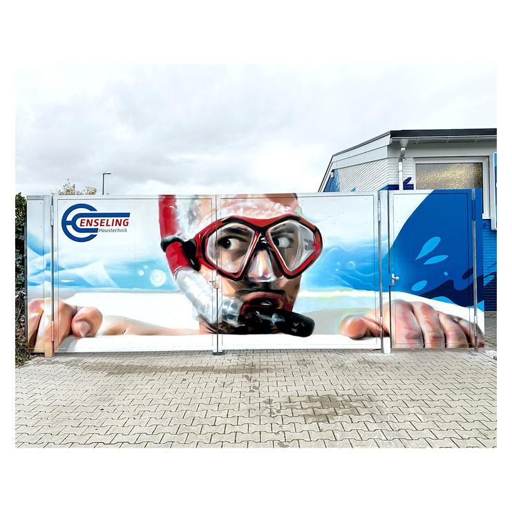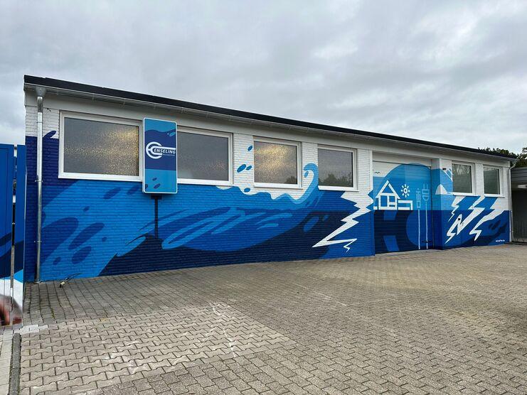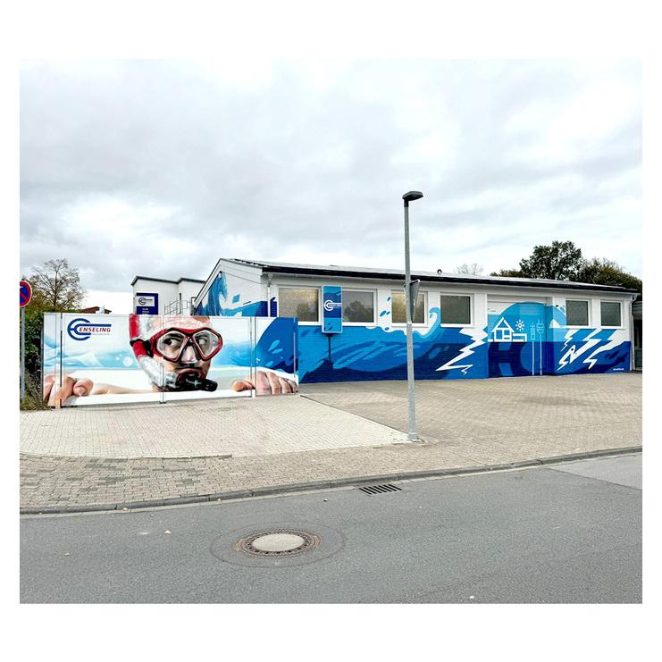Für die Firma Enseling Haustechnik in Dülmen entstand eine Fassadengestaltung, die garantiert den ein oder anderen zum Schmunzeln bringt...