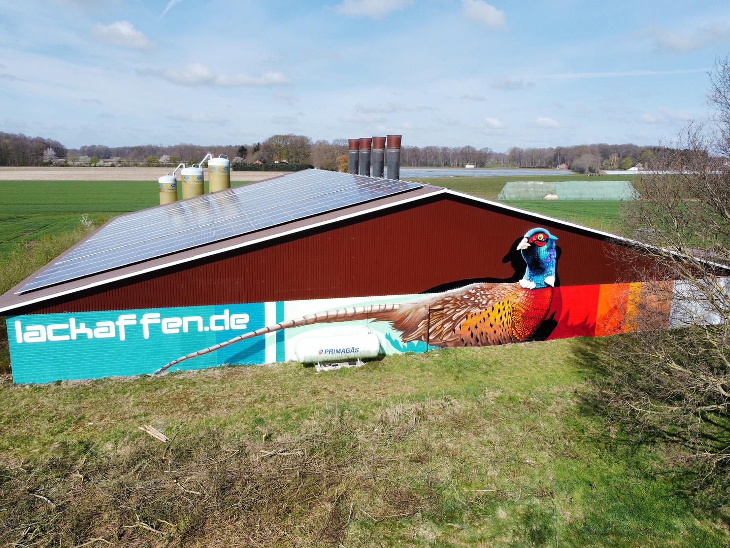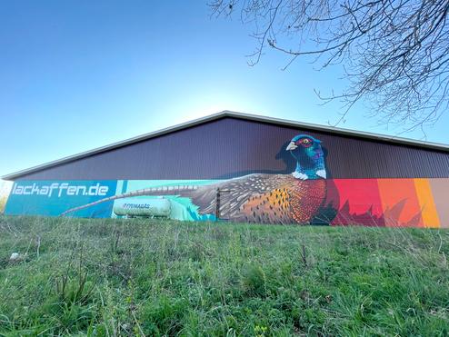 Der überdimensionale Fasan präsentiert mit Stolz sein prächtiges Federkleid, sodass die Autofahrer auf der A1 bei Bremen ins Staunen kommen.