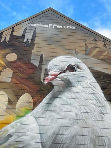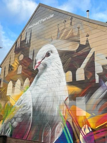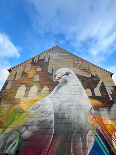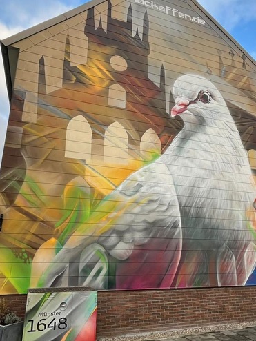 im Jahr 2024 haben wir zur Weihnachtszeit in Münster eine besondere Botschaft an die Wand gebracht: Eine Friedenstaube, die an den Westfälischen Frieden erinnert und zeigt, wie lebensfroh und offen unsere liebenswerte Heimatstadt ist.