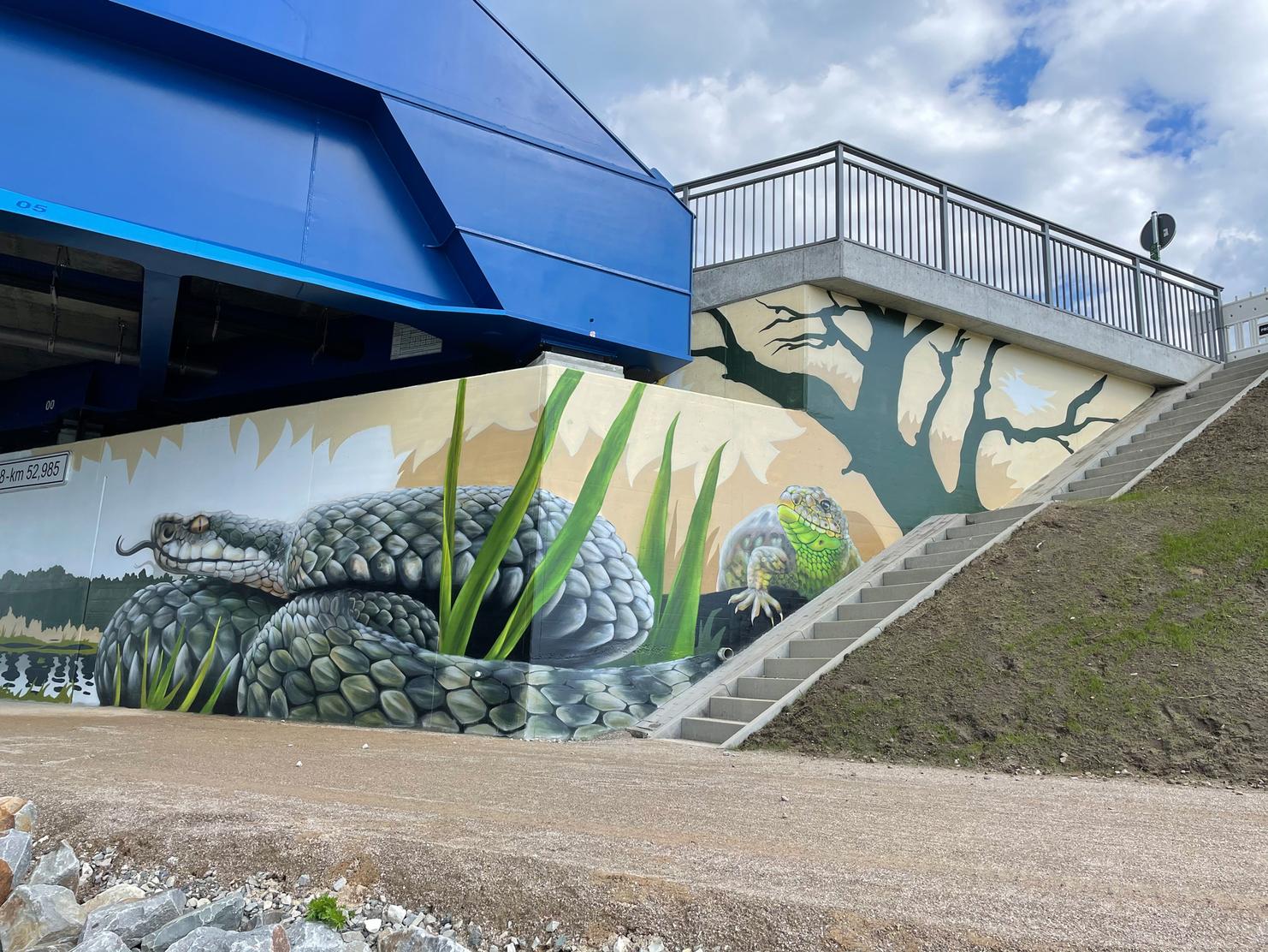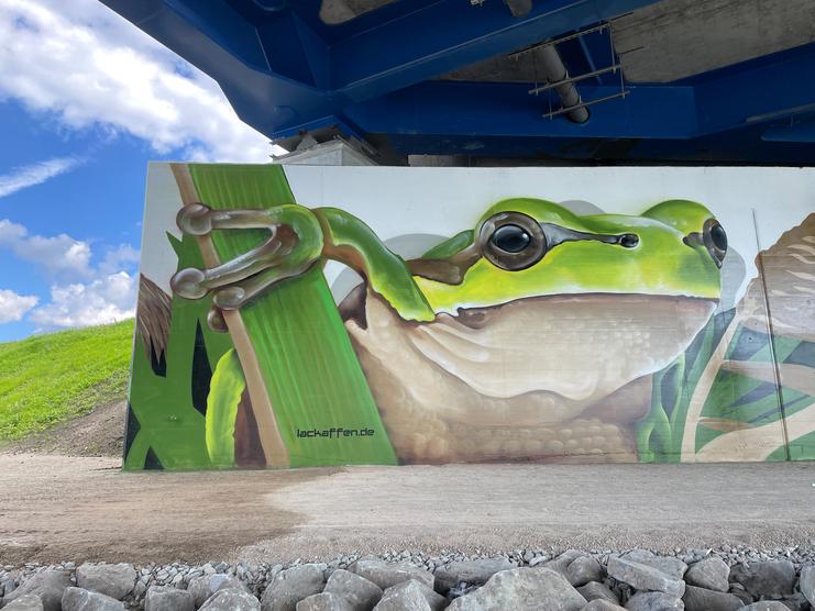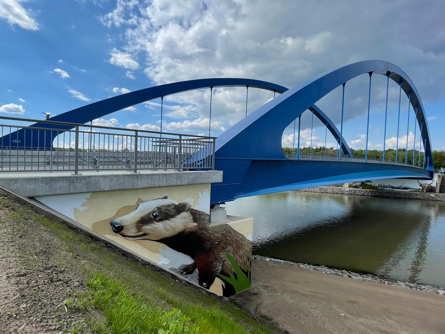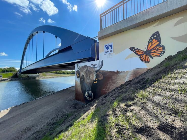 Mit der Erneuerung der angrenzenden Kanalbrücke entschied der WSV sich für eine Gestaltung der Widerlager. Wir setzten dankbar um!