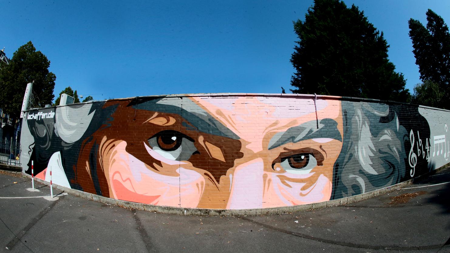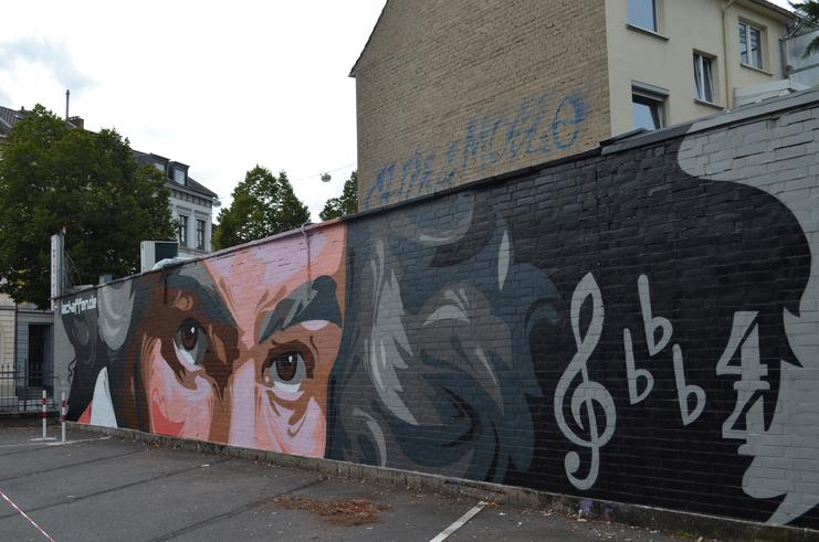 Bonn hat einige bekannte Persönlichkeiten herausgebracht, doch dieses Werk stellt mit Abstand den berühmtesten Namen zur Schau. Zu sehen ist ein prägnanter Gesichtsausschnitt des Komponisten Ludwig van Beethoven. Stilistisch gesehen eine Verschmelzung von grafischen Flächen und dynamischen Strichführungen. Somit finden sich typische Graffitielemente in dieser Gestaltung wieder.