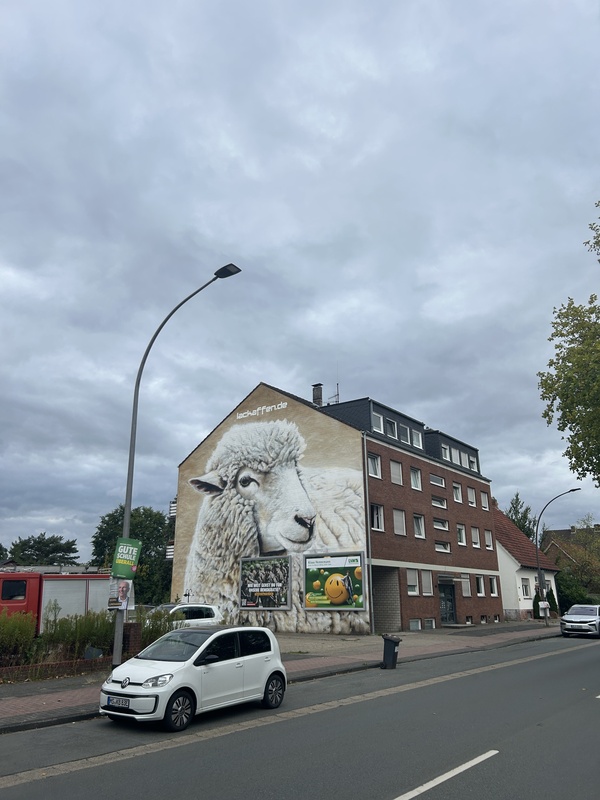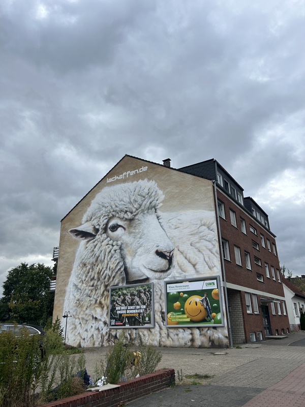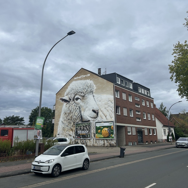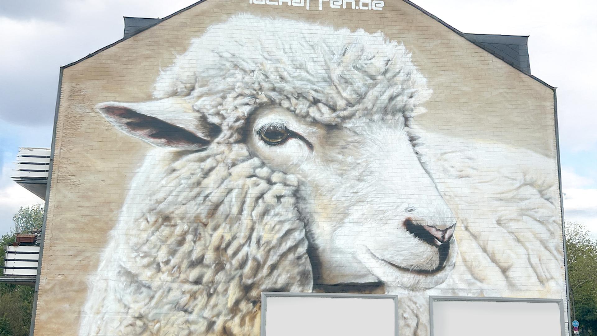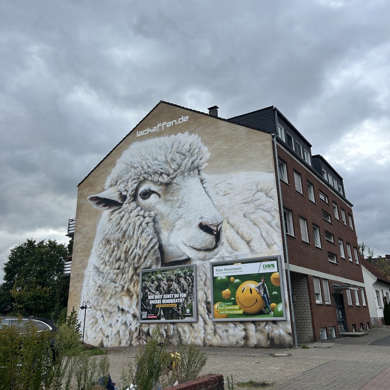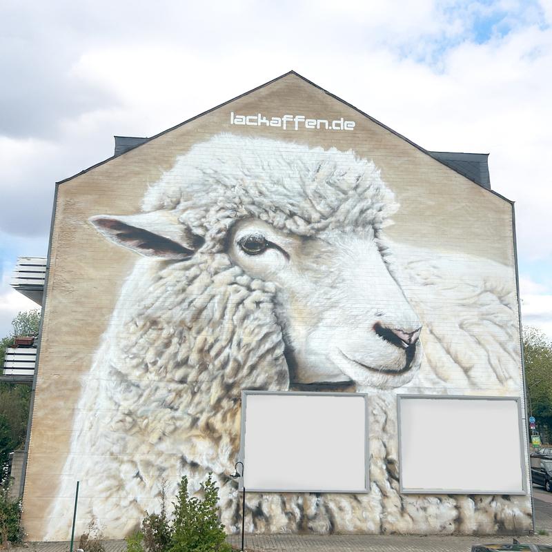 Ruhig, bodenständig und ganz nah an der Region. Auch wenn wir oft exotische Tiere malen, finden wir, dass unsere heimischen Motive genauso viel Aufmerksamkeit verdienen. Dieses Schaf steht stellvertretend für die Landschaft, die man hier jeden Tag vor der Haustür hat – nur selten so groß.
