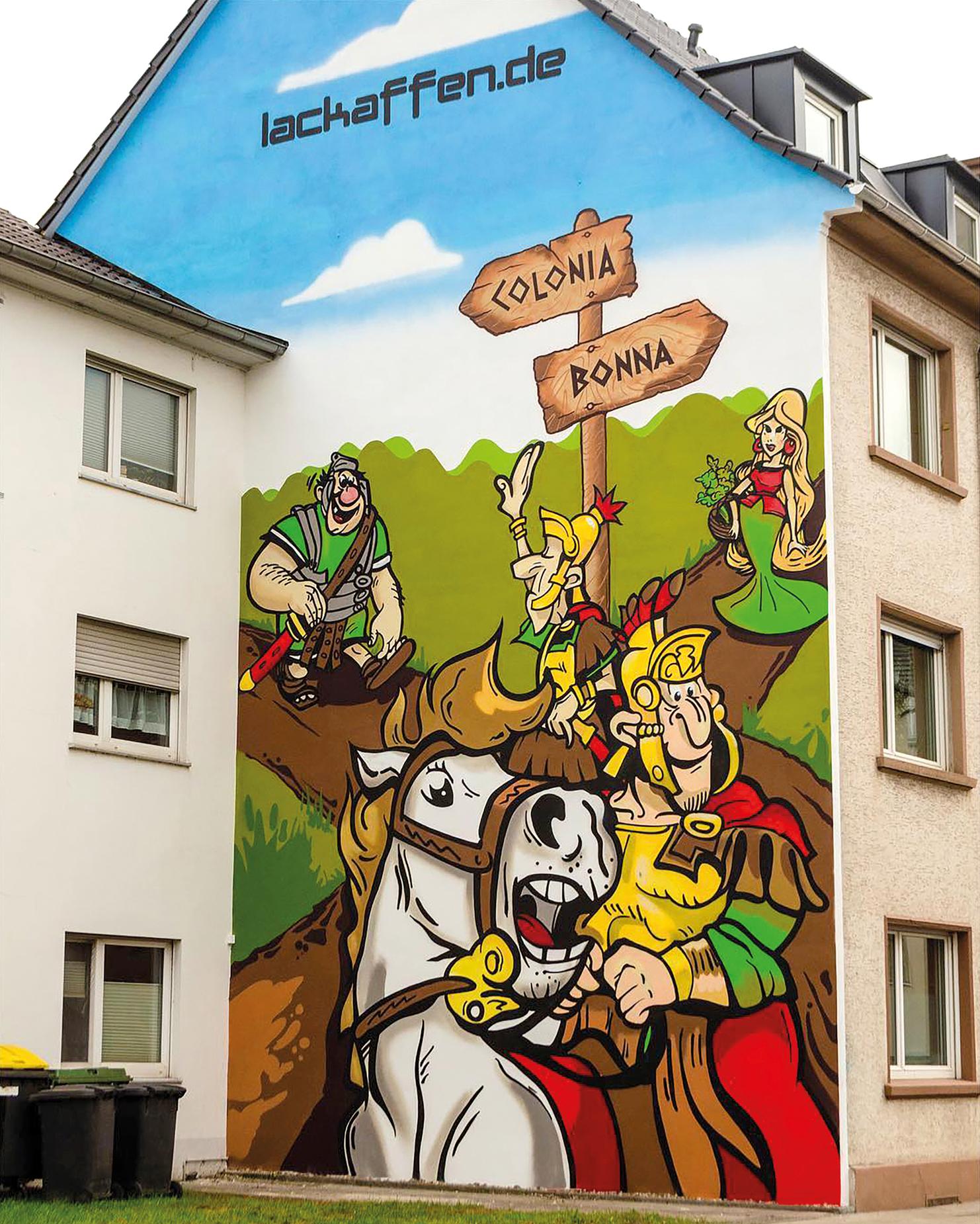Das Projekt nimmt spielerisch den Bezug des Straßennamens auf und weist den Weg in Richtung Bonn oder Köln.