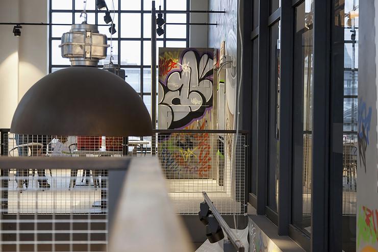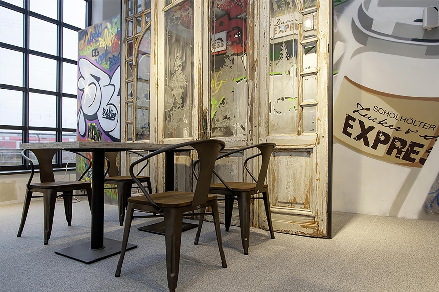 Graffiti im klassischen Sinne hat seinen ganz eigenen Effekt. Vor allem im Kontrast zur industriellen Architektur gibt es den Räumlichkeiten einen besonderen Flair.