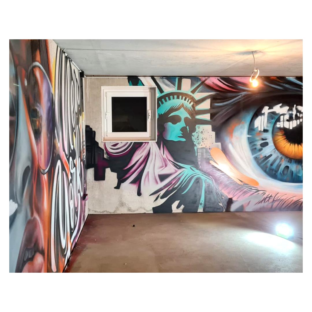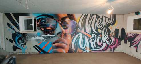 Für eine Graffitibegeisterte Familie, die New York lieben, durften wir diese Streetart Gestaltung im Keller vornehmen.