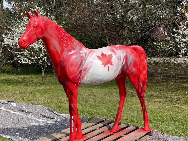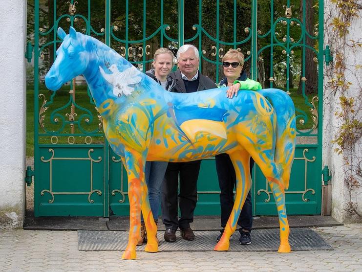 Zwei Pferde Skulpturen für die Charity Auktion bei Horses & Dreams. Wir freuen uns, dass unsere Gestaltung des blau-gelben Pferdes so viel Anklang gefunden hat und für insgesamt 35500€ versteigert wurde! Passend zur Pferdgestaltung ging der Erlös an die Ukraine und an die Welthungerhilfe.